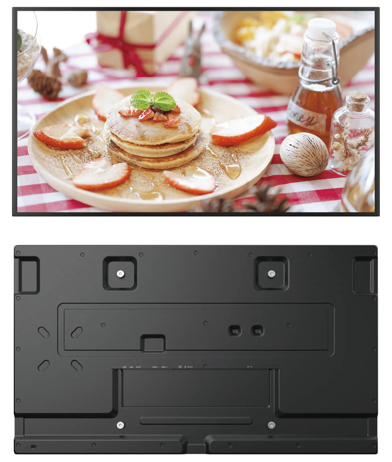 4K解像度(UHD)対応で、鮮明かつ優れたディテールのコンテンツ表示が可能です。周囲の光による反射を最小限に抑え、特別設計のナローベゼルを採用(PUS55B→6.8mm)。さらに、24時間連続稼働する安定性を誇る新製品です。